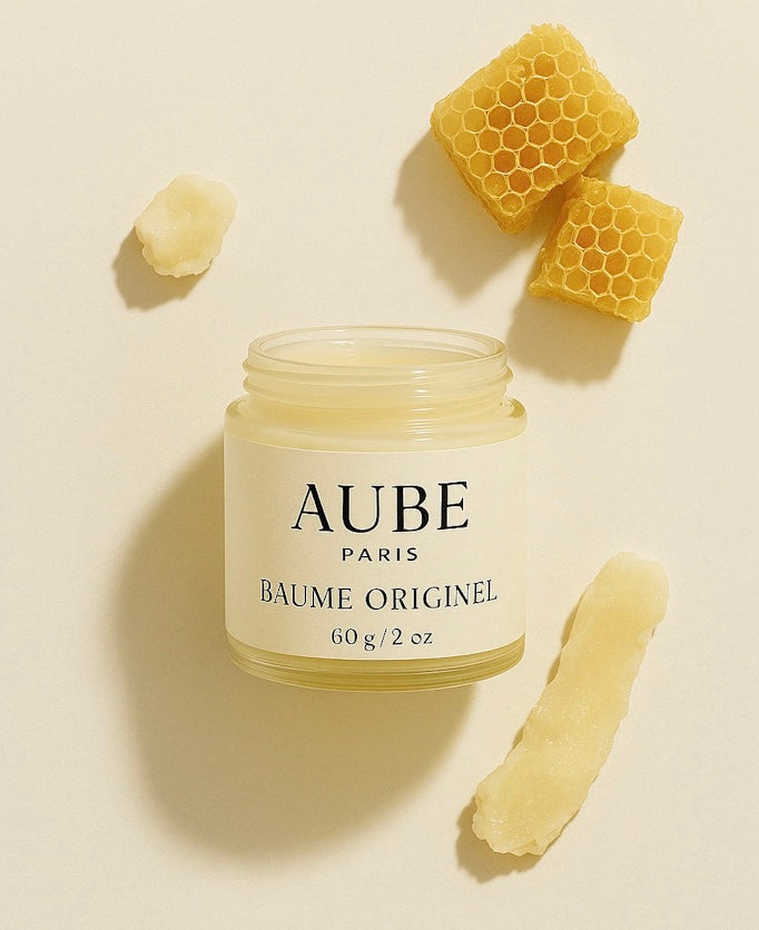 Aube Paris se distingue par des formules minimalistes et 100 % naturelles, fondées sur des ingrédients ancestraux comme le suif purifié, le miel brut et la cire d’abeille.
